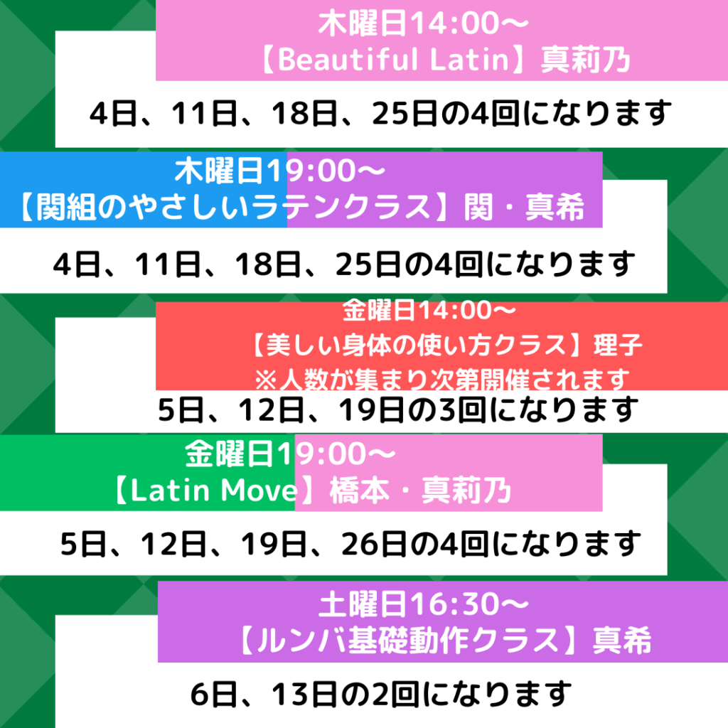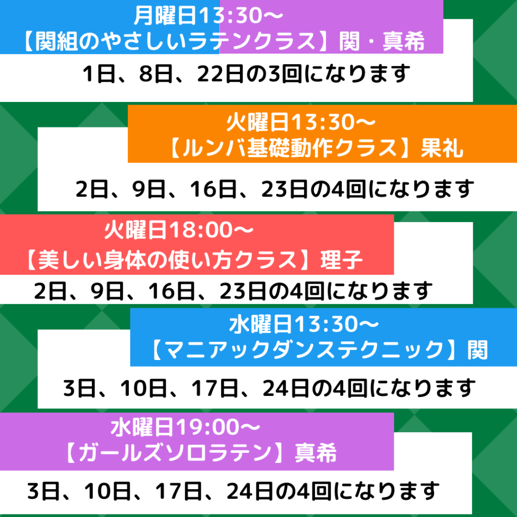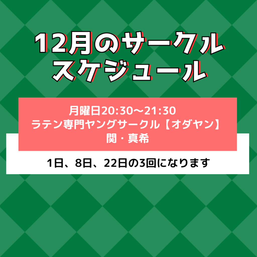 12月のグループレッスン及びサークルのスケジュールになります。