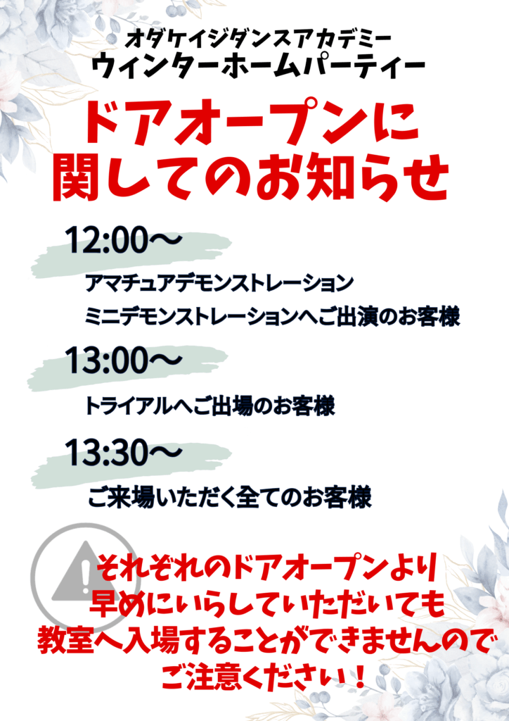 2025年12月20日土曜日のウィンターホームパーティーに関してのお知らせです!